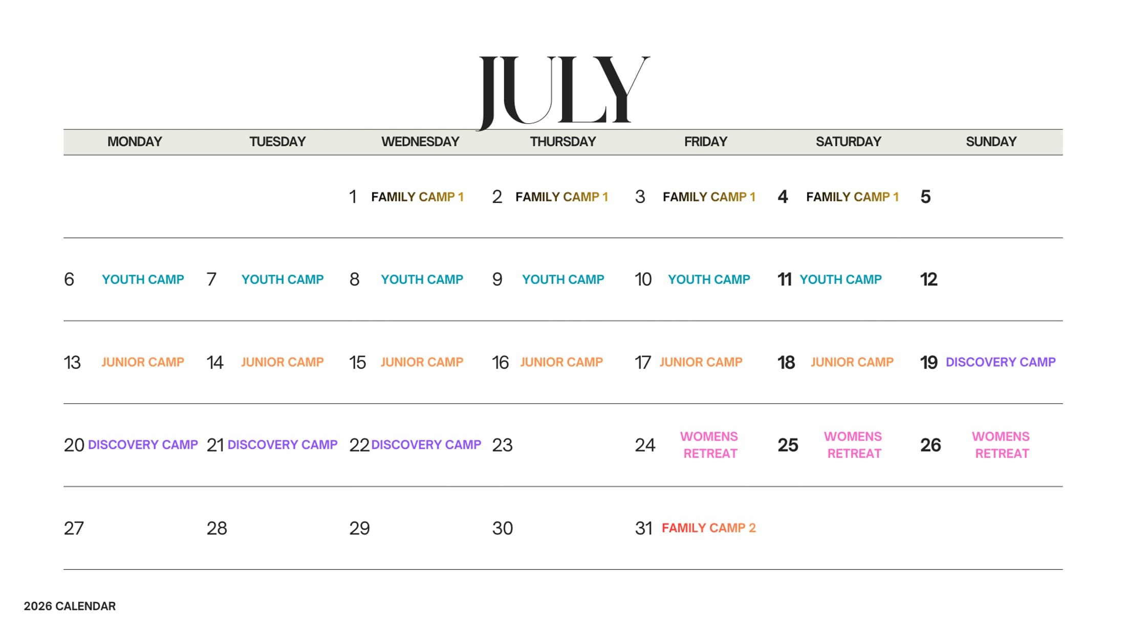 We strive towards building a knowledge of Christ and a spirit of discipleship in all that we do. Camp is not just about a week in the summer, but equipping our campers and staff for their everyday Christian walk. Helping campers remember Christ in their everyday routine is one of our main goals.